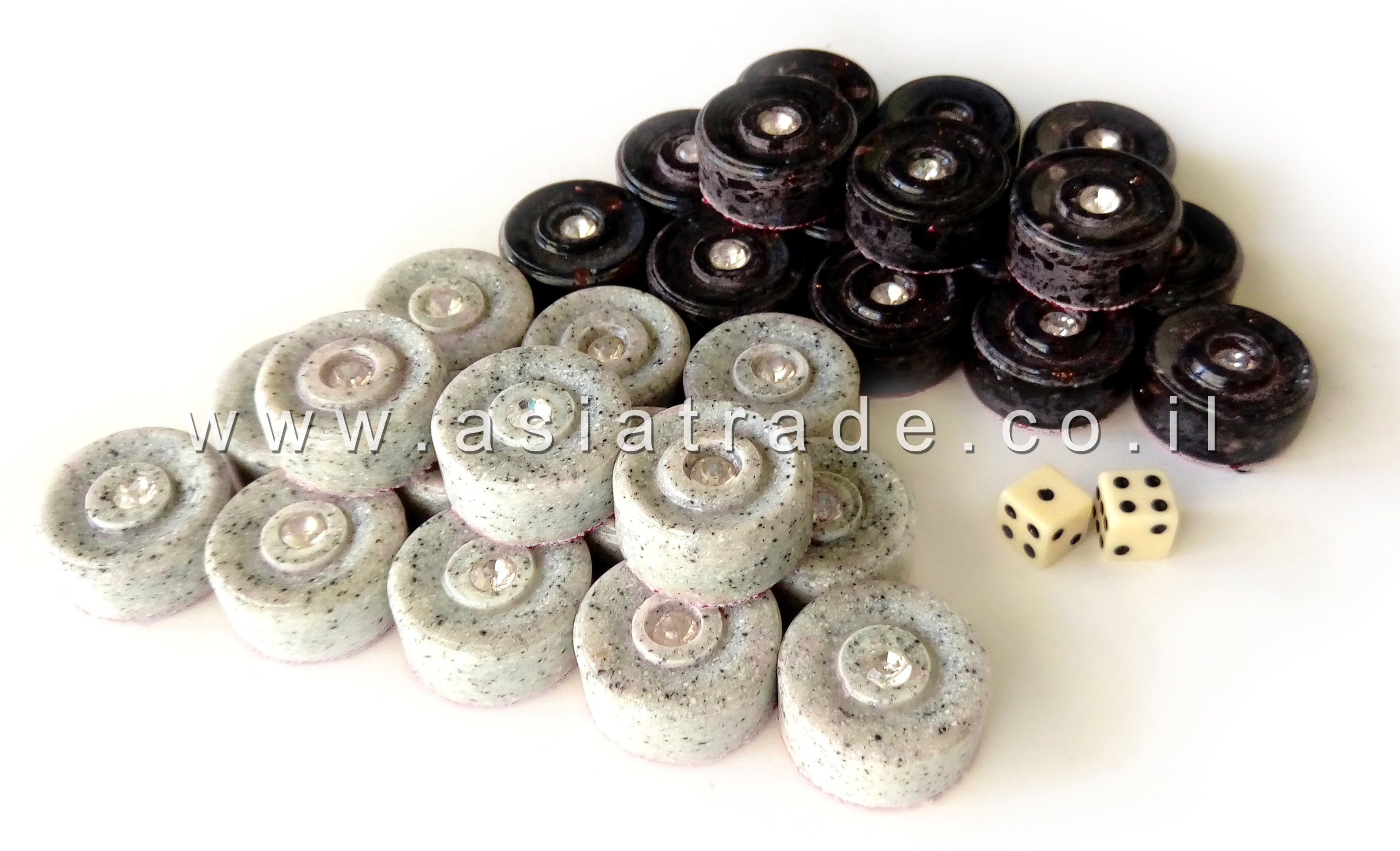 אבני משחק לשש בש עשויים משיש יוקרתיים .